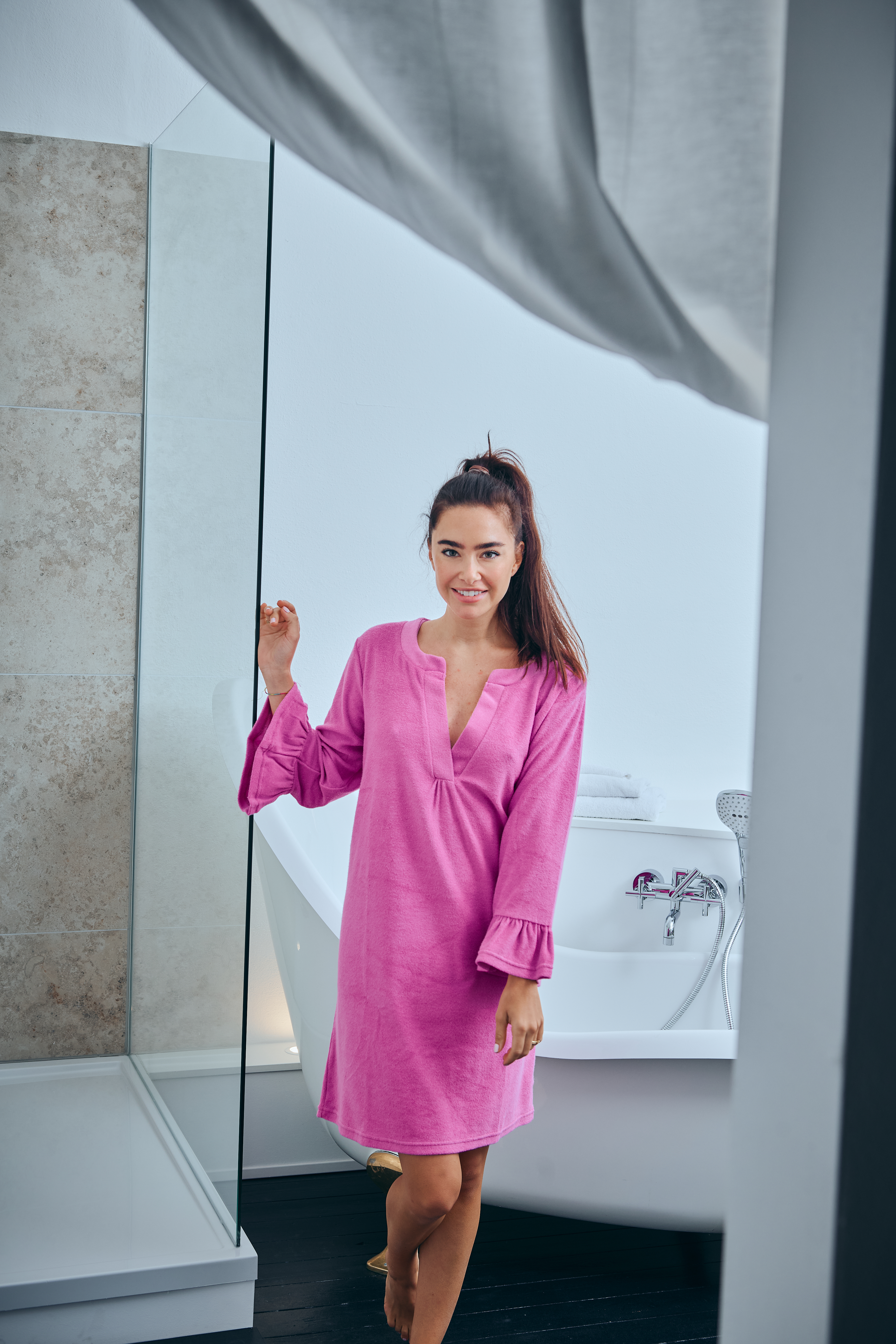 Produktinformationen Frottee Badekleid mit Rüschen, rosa