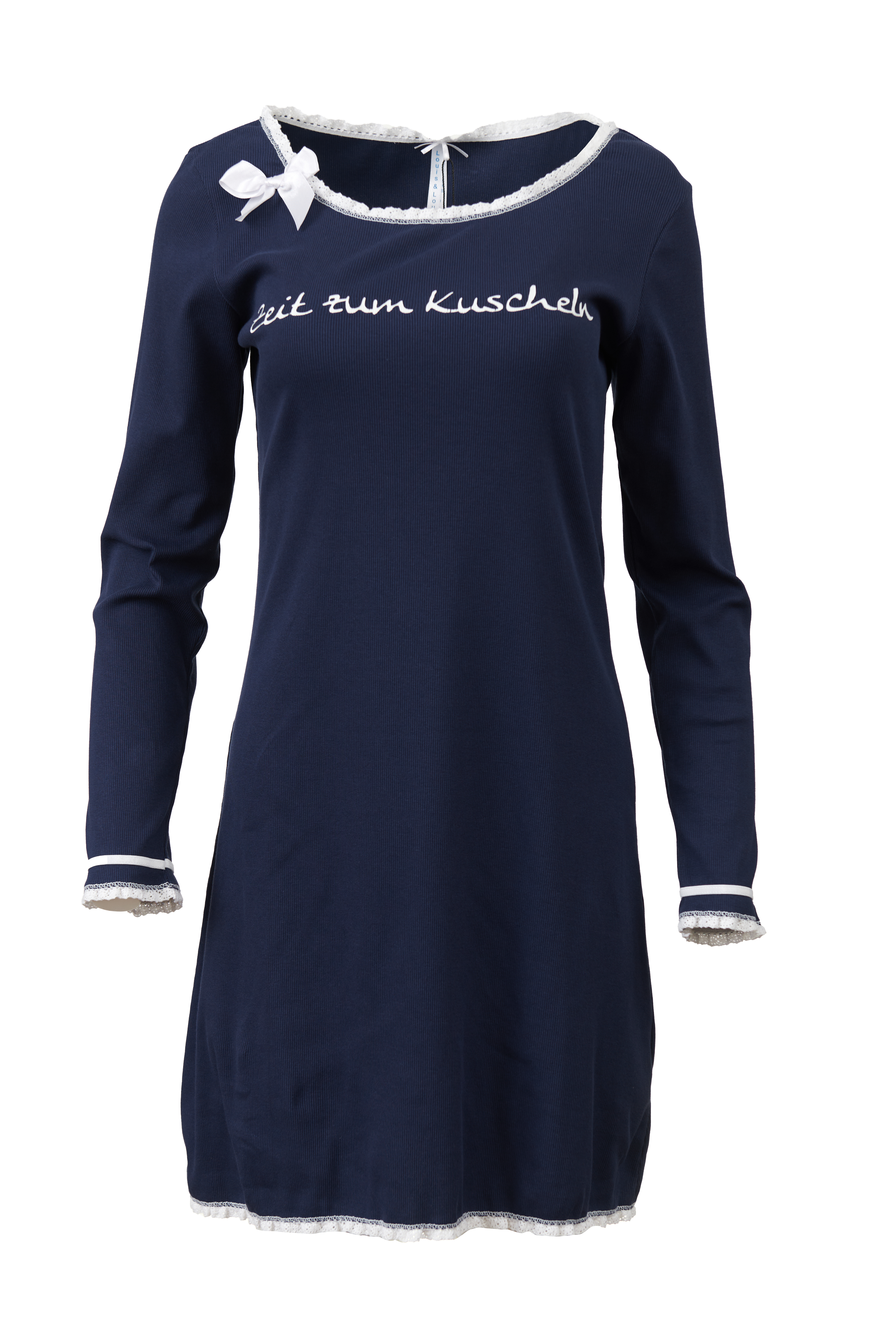 Nachthemd Damen Rippe "Zeit zum Kuscheln", dunkelblau