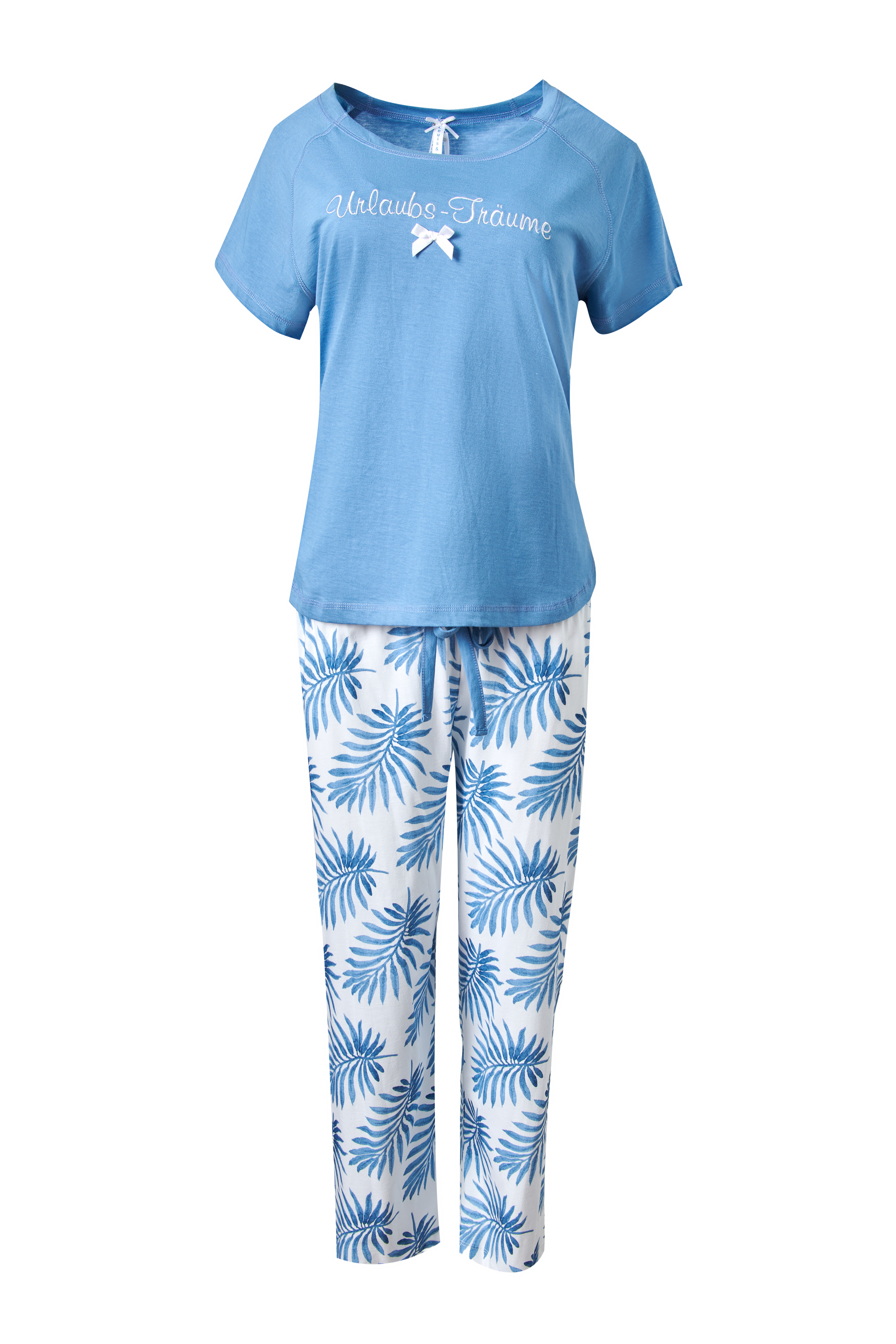 Pyjama Capri "Urlaubs-Träume", blau / Blätter allover