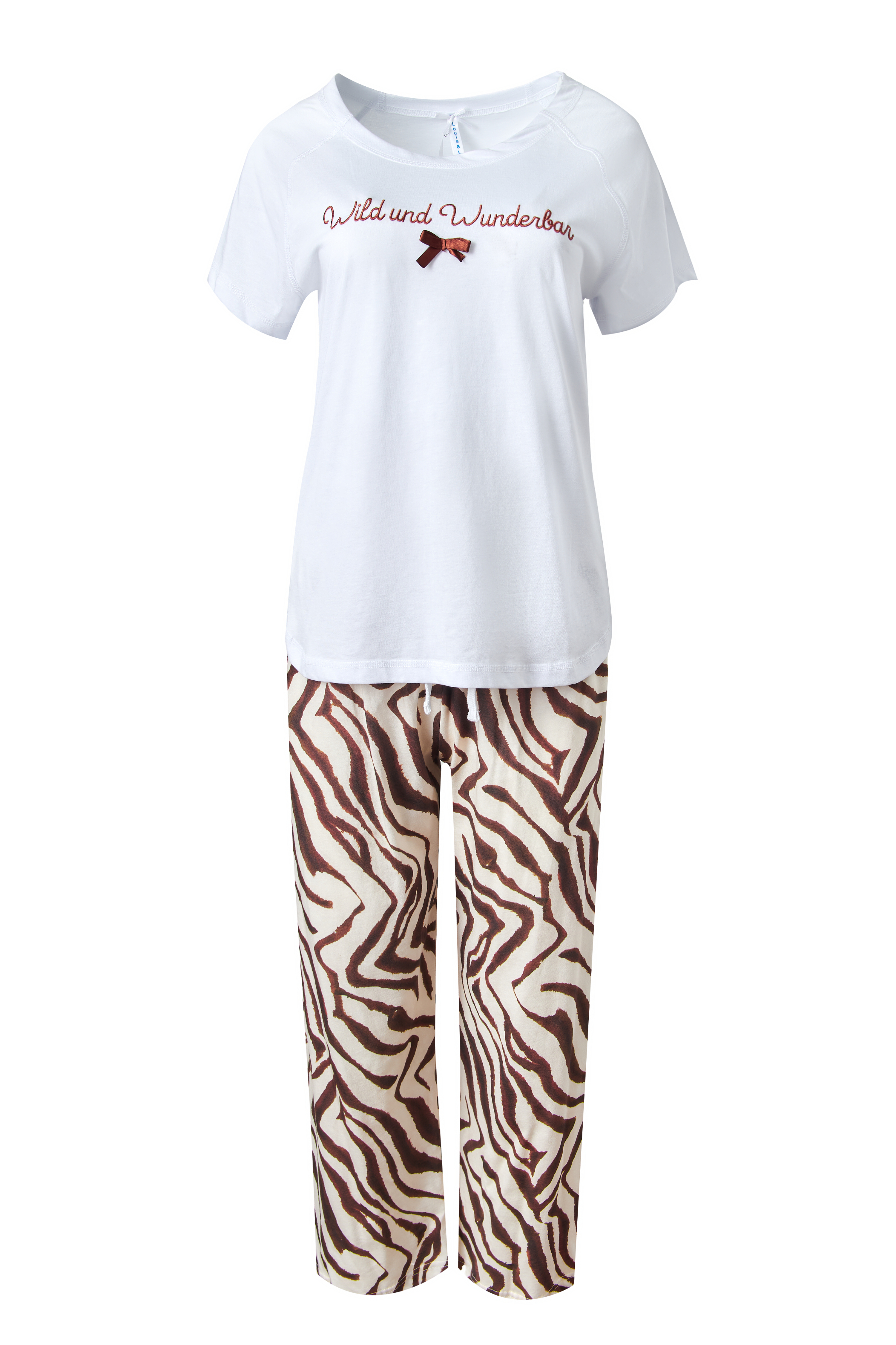 Pyjama Capri "Wild und Wunderbar", weiß / Zebra allover