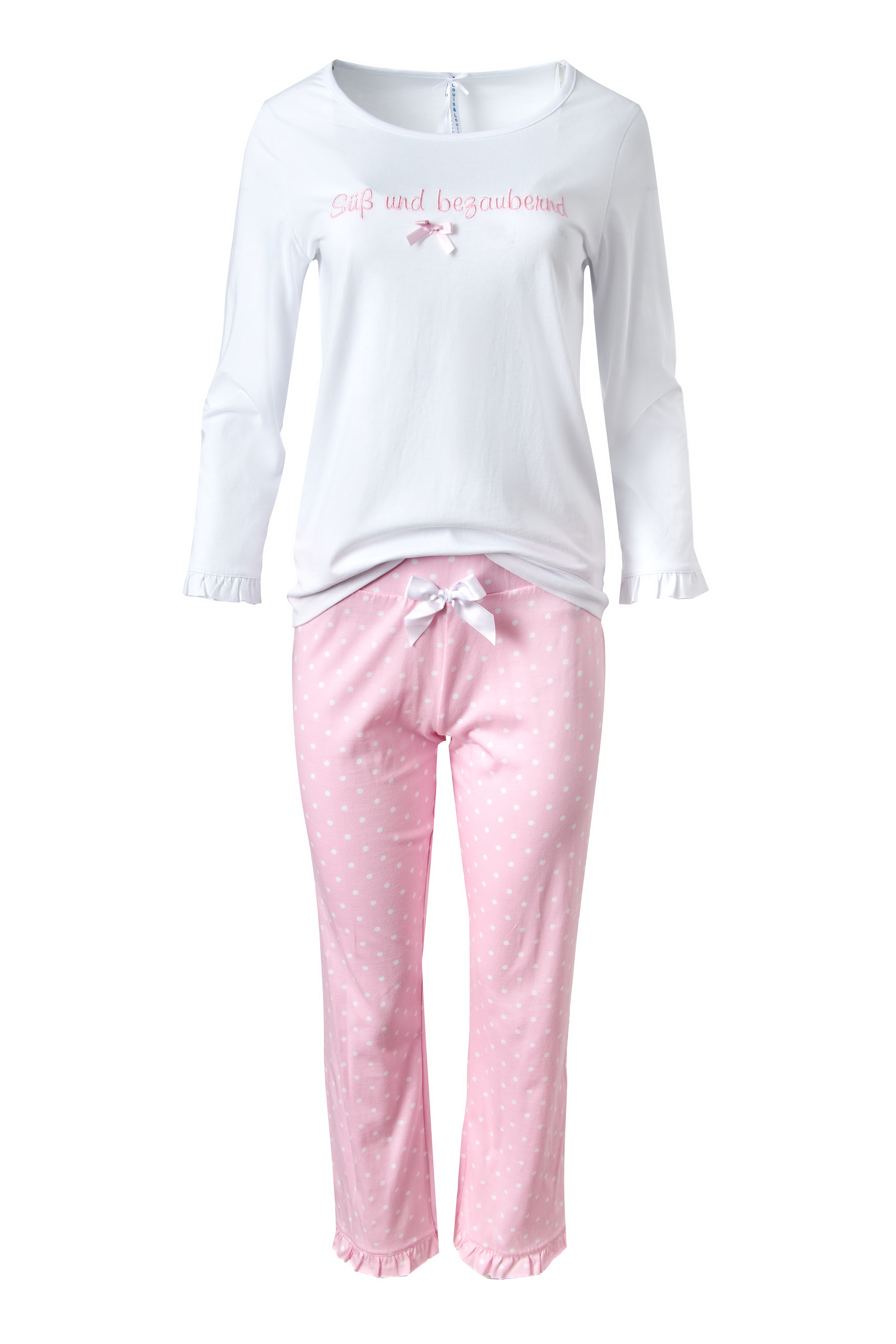 Pyjama Damen Basic "Süß und bezaubernd", weiß / rosa mit Pünktchen