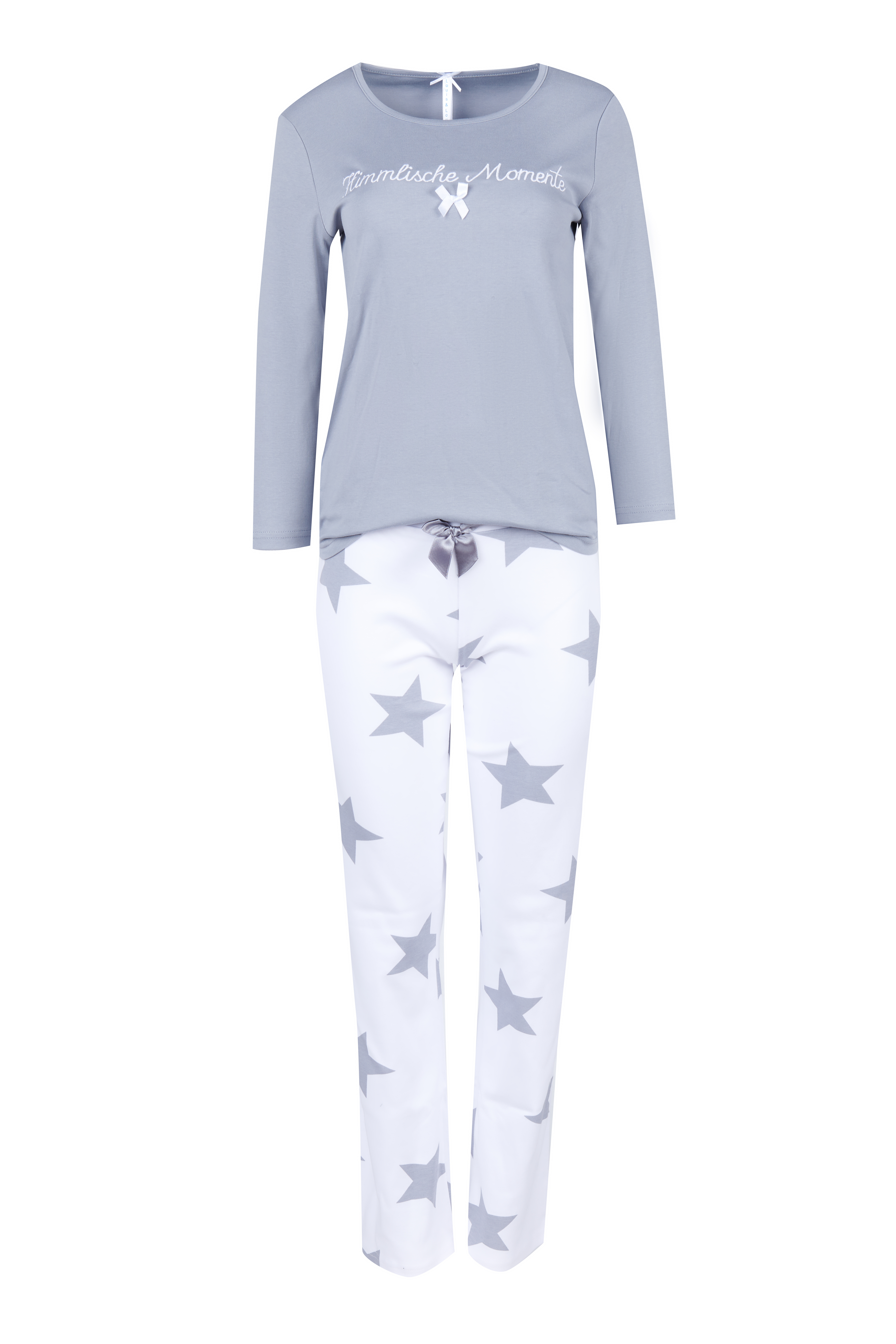Pyjama Kinder Basic "Himmlische Momente", grau / weiß allover