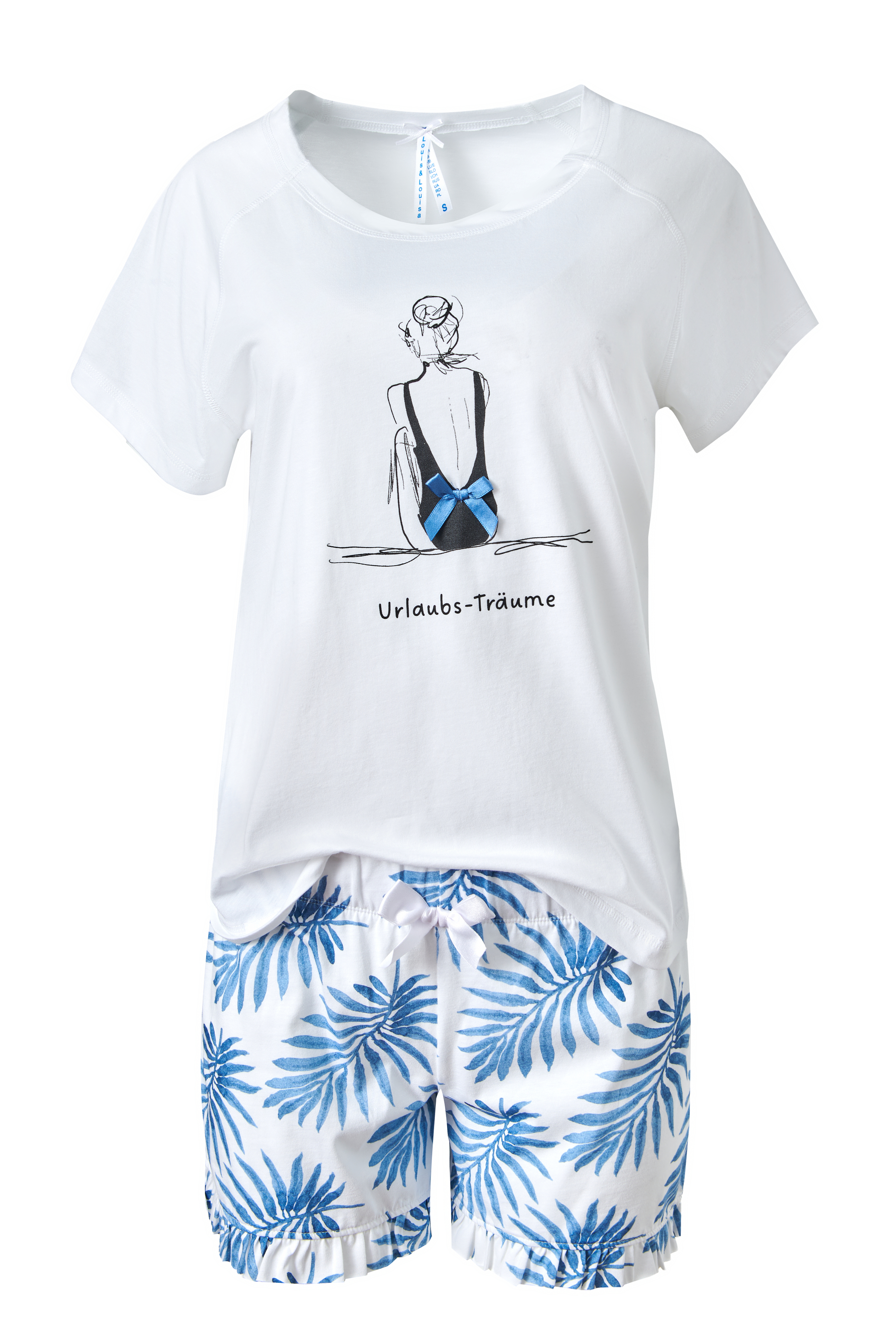 Produktinformationen Short Set "Mädchen mit Badeanzug", weiß / Blätter allover