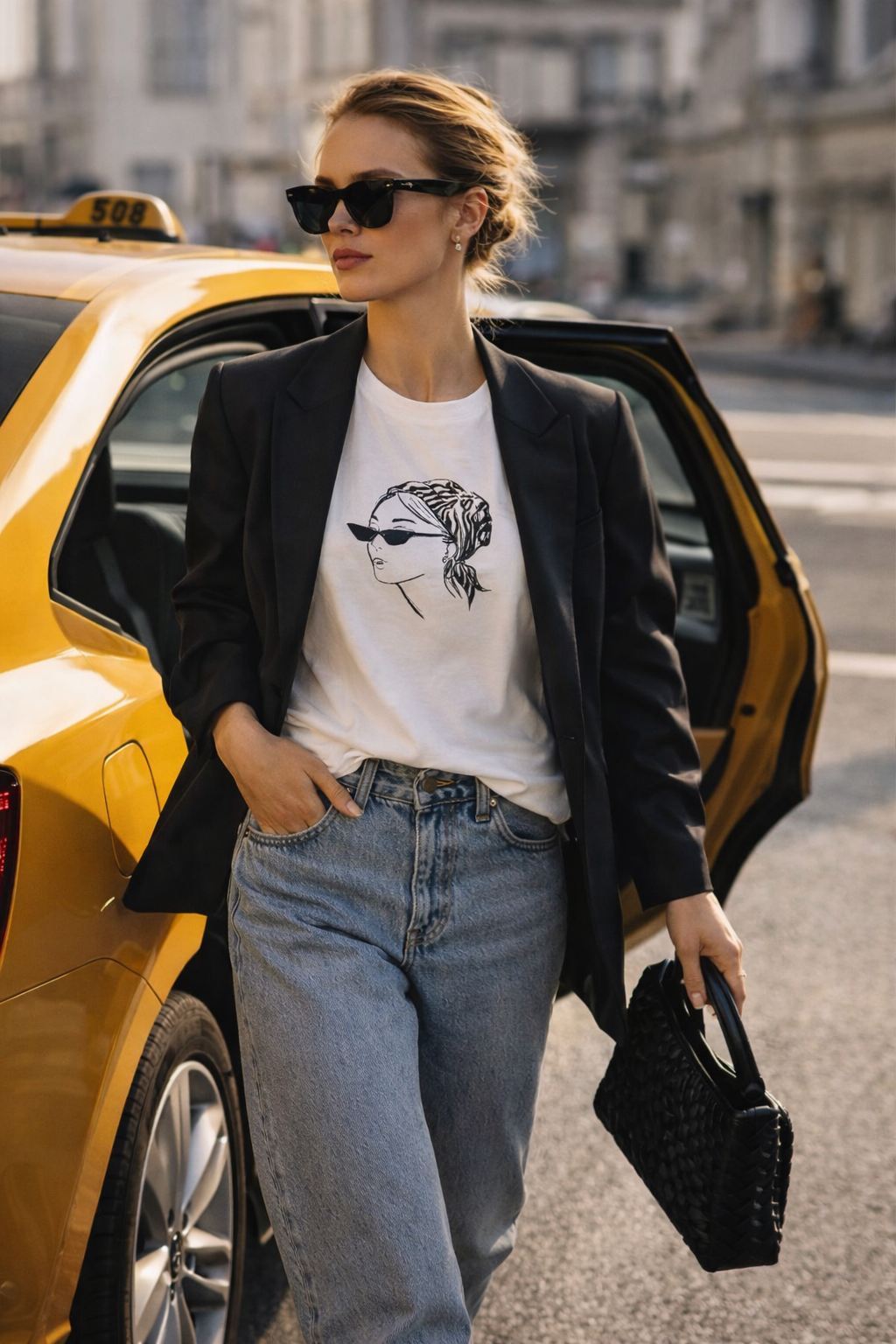 T-Shirt "Dame mit Sonnenbrille", weiß
