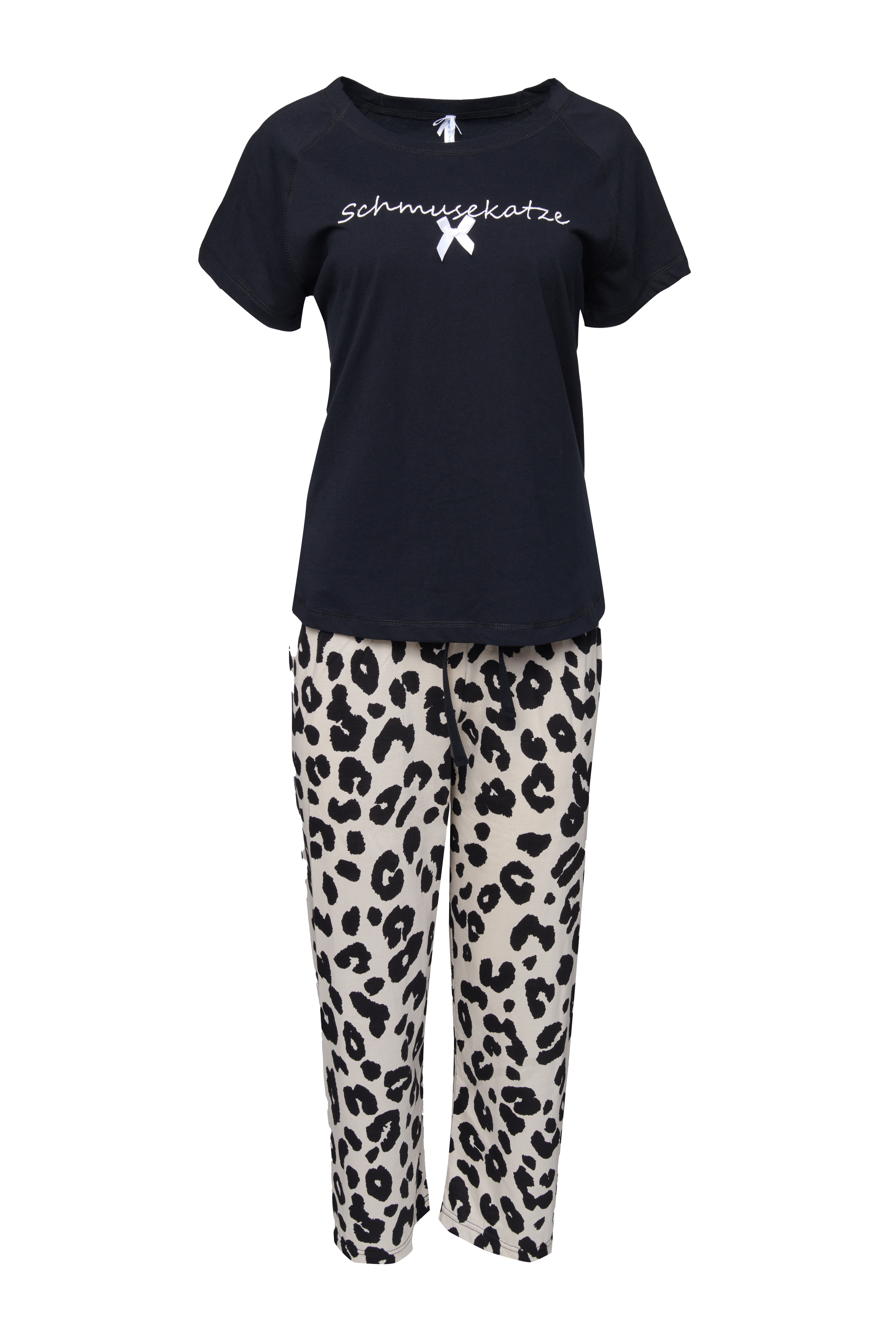 Produktinformationen Pyjama Capri Damen "Schmusekatze", schwarz / Leo