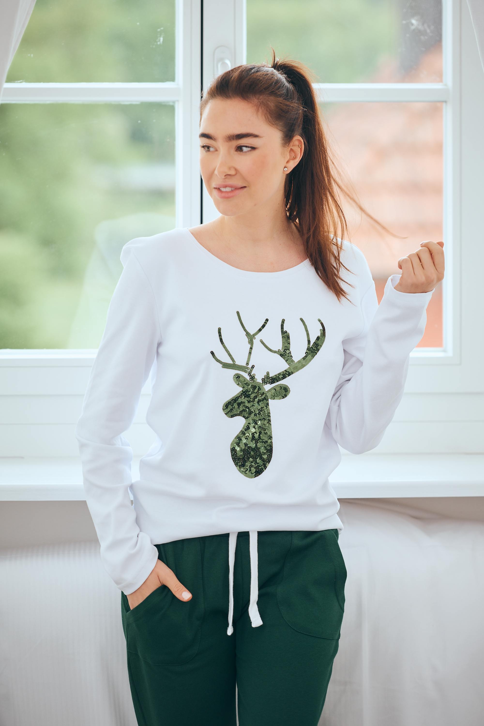 Shirt Damen "Paillettenhirsch", weiß/ grün